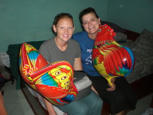 Most of the people here drive a moto bike — like a moped but have a bit more power. The things they manage to put on them is truly amazing. They sometime fit up to four people on them — I saw one lady who had bound about twenty chickens together by their feet and they were handing upside down off the back of the moto bike over each side of the bike like a saddle bag — yup there they were alive and still clucking away strapped to the end of a moto bike. I really wish I had my camera on me at the time.