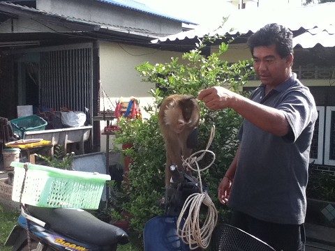 14 hour flight from LA to Tai Pei, Taiwan+3 hour flight from Tai Pei to Bangkok, Thailand+1 hour bus ride on the back of a truck to the real “bus station”+14 hour bus ride from Bangkok to Phuket, Thailand. Needless to say, my back is sore.