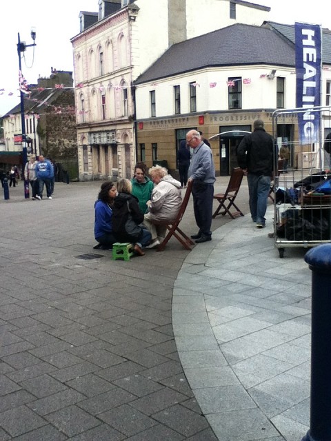 This  ministry is actually set up at the beautiful town center of Coleraine. We set up a station with several chairs sitting out on the street, pass out leaflets and ask people if they need prayer for healing or anything else. This ministry works with a loving and compassionate environment, full of the presence and power of the Holy Spirit. It is marked by a true sense of peace. Amungst the hustle and bustle of busy shoppers, walks the Prince of Peace. Stillness falls; passers-by begin to slow and stop and the presence of God draws them in. They'll sit down and a team of 3-4 come and kneel before them, lay hands on them and pray.