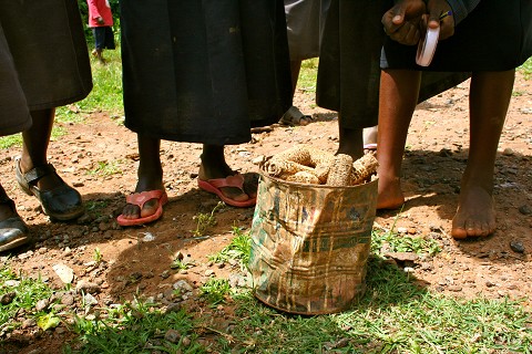 10:40-11:20am: Recess. Play corn cob game with kids and try not to fall in the mud or get beamed by make-shift ball.