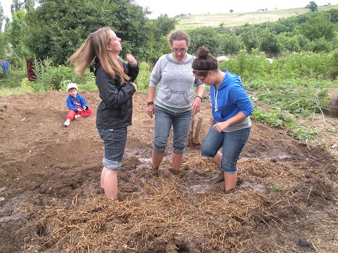 Let me remind you that it was not a warm morning in Romania, but that it was so cold that I was actually wearing two jackets. Stepping into the mud that came almost to our knees, it was freezing cold and our feet quickly lost feeling. But then they added straw to the mud and because our feet were so cold everytime we stepped on a piece it felt like we were stepping on nails and the pain would just shoot through my legs.