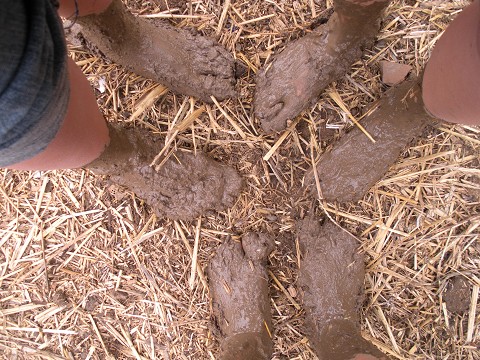 So now we have mixed the mud and now it is time for the guys to step in, get their hands dirty and form them into bricks, but wait a minute they don’t just want the guys to help they wanted me to help too. As if I wasn’t already dirty enough with thick mud and straw up to my knees, did I really have to get my hands dirty too? Well yes I did and of course as always it turned into a good time. I think I was just more miserable on this day than usual because it was freezing cold outside and we never saw the sun once or even got much warmer during the work. I’m sure that if had been a sunny day I would have gotten right in their and completely rolled around in the mud if they had given me the chance and of course if it was hot and sunny outside.