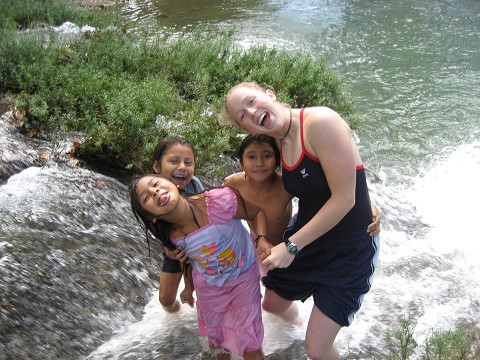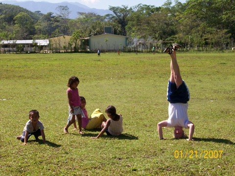 As we were walking around the first day, I saw a group of girls in a field doing cartwheels. So as a fellow wanna-be-cartwheeler, I went to go join them. Most of them fled as they saw me approaching, but one brave girl decided to stick around. She should have known better to trust a crazy blonde “gringa.” So we began doing cartwheels together and as we were doing them, a mass crowd of kids began to surround us. So I stopped to greet them, and again, they took off running. This time, though, I took off running after them, and not in some scary kind of way like a weirdo. All the kids went running, and they got the hugest thrill out of it. It was so much fun, but oh how I regret doing that later in the week, because chasing them for 20min or more everyday has become a routine now. Well at least I know I’ll be in good shape when I leave this place!!!