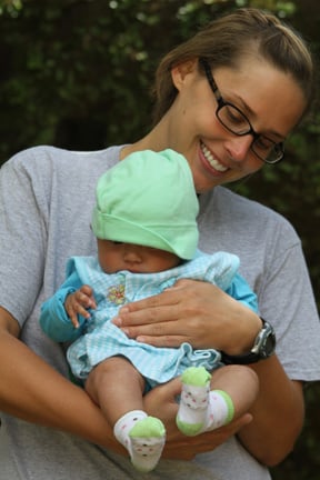 This week I met Gloria. Her dark hair was pulled back in a double French braid. She has the longest eyelashes I’ve ever seen and a face like Audrey Hepburn. Her fingers are tiny, dainty and long. One hand is always moving back and forth to her mouth, like a signal to eat. According to Anita (a woman from the States who came to this hospital a year and a half ago and has returned seven times since), the nurses say Gloria can’t hear but if you hold her close and bring her hand to your heart she responds. Maybe she can hear the rhythm of your heart. That’s all I needed to know. Gloria was in my arms in two seconds. She was sopping wet. I carried her into see the nurses for a diaper change. They gruffly motioned to wait while they ate their lunch. I lay her out on an open crib, brought her hand to my heart and sang. Disney songs (inspired by her Jasmine socks), Hymns, and alas… the Sound of Music.