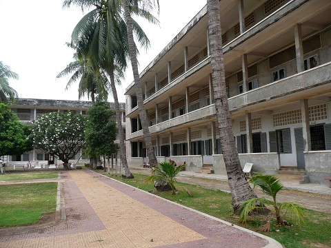 Pardon my ignorance on the Khmer Rouge, but I didn’t know that Cambodia had its own Holocaust. This Sunday we visited the equivalent of a concentration camp. It was a high school in Phnom Penh. I shuddered at the commons area – thinking of my own high school turned into torture chambers. The elite and intellectuals – the teachers, doctors, lawyers, were seized and held. Classrooms were divided into narrow brick cells. Chin-up bars once used for P.E. were used for torture, stringing victims by their feet until unconscious then dropping them into water.