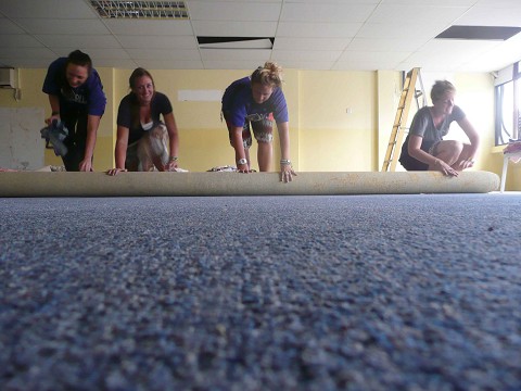 Woman Power! Rolling Carpet for a church in KT.