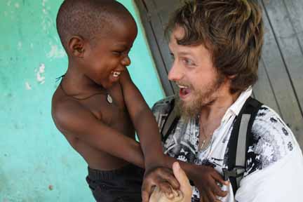 A little boy who lived next door to the church, Ian, and Greg hamming it up.