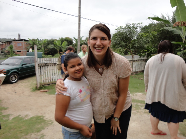 I have to stop saying “Si” when people talk to me in rapid Spanish. One day I tried to say that I spoke very little Spanish, but only got out “un pequito” which the woman took to mean I wanted some water. That happened to me more than once and you never know exactly where they are getting there water source from. This also happened to me when we went to visit and share the Gospel with homes in the mountains. Over the past two weeks we have been spending some time with the youth of the church in Calderon going to homes and talking to people about Jesus. That day in the mountains one of the houses we stopped was of an elderly woman. The Ecuadorians we were with began to share about Jesus and as they all talked back and forth the woman would look at me and begin talking to me. She was so sweet trying to include me in the conversation and I would just smile and say Si. This is how I got a bag of yucca (sort of like potatoes) and plantains. She hugged me going down the stairs and all I got out of her rapid Spanish was gringo and bonita (pretty).