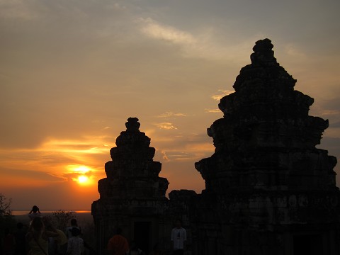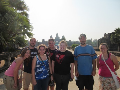 We left for Siem Reap and Angkor Wat on Thursday morning. After a four hour bus ride, we arrived at an amazing guesthouse, complete with airconditioning, satellite television, wifi, real mattresses and beds, and western style toilets! I about fainted and just kept thanking the Lord for his provision. We left soon after for Angkor Wat, to buy our tickets for the next day and watch the sunset. It was weird and cool-we climbed to the top of a 1200 year old temple to watch the sunset. There were monks intermixed with heaps of tourists, and it was pretty crowded. It was a nice sunset.