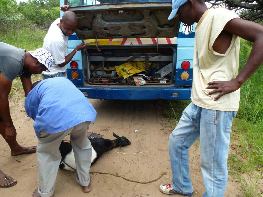 We go to the bush and come back with a live goat stuff under our back seat…dinner