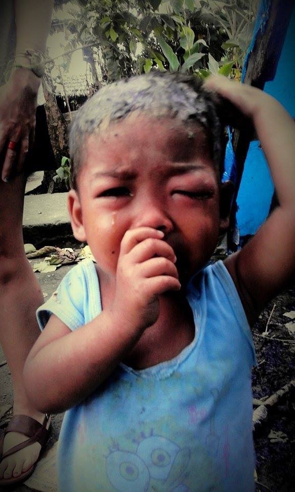 Wearing a torn shirt, he stood with three fingers in his mouth crying. It had been raining and a few drops dripped off the tarp onto his head. Ate Beryl tried to speak softly to him, but he just continued to cry. He looked to be about three years old. I got as close as I could without frightening him. I noticed the top of his scalp seemed to have open scabs underneath his hair that was oozing with pus.. a lot of it. His left eye was almost swollen shut, and other sores seemed to be breaking out on his body. Sometimes you don’t realise you have a heart until it breaks.