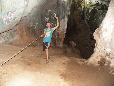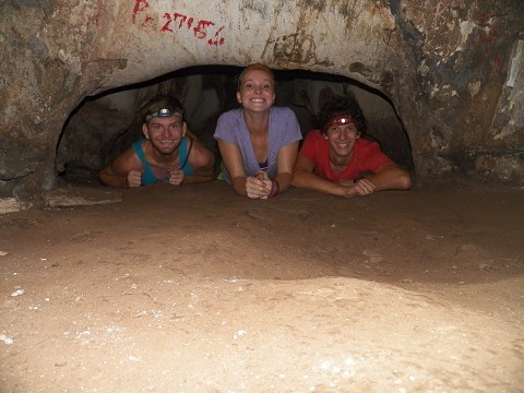 Here are some pictures of us climbing up on top of cave cliffs, chilling under some cave formations, and crawling on the ground into tight spaces in order to advance further in to the darkness of the cave. (Obviously you can’t tell how dark it is because of the camera flash).