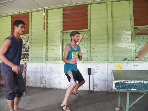 So after we explored for several hours and had numerous hilarious experiences we decided it was time to head back. While walking back we passed the Gua Musang train station, and that was when I heard the glorious noise of a ping pong ball. I walked into a room and saw some train station workers playing ping pong. Before I knew it I was playing doubles ping pong with the entire Gua Musang train station staff! We were playing some intense ping pong, and they would all laugh and make fun of their friends when I would beat them. (Finally, all the hours of playing ping pong in college has paid off!)