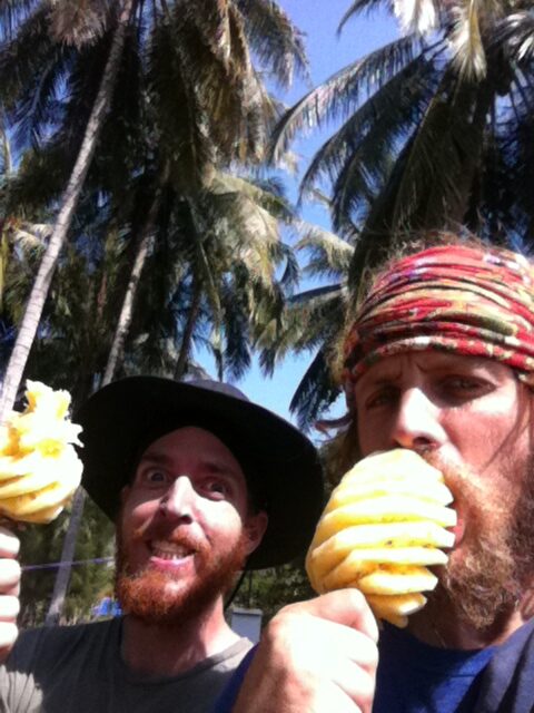 some freshly cut, cold pineapples, which were just delicious after having worked long hours in the hot sun.