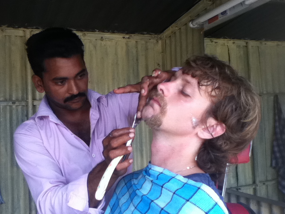 with his straight razor to give my face a trimming. Upon finishing, he cleaned my face and I