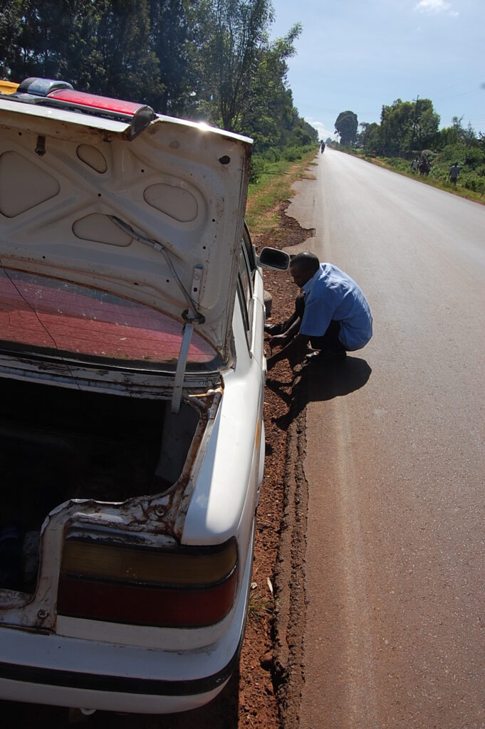 (This is not Justice but another taxi driver whom had gotten a flat on our way into Kitale, but this is the feel of the culture we were in)