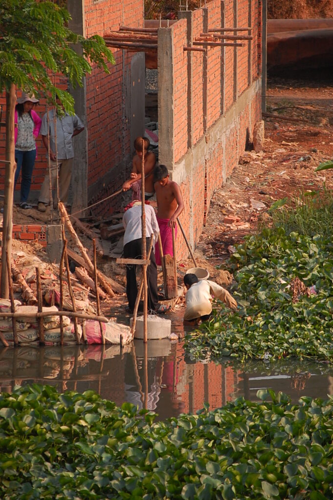 building up their tin roofed, bamboo stilted house. I see the same woman most days along the side