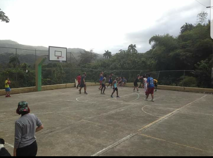 Thus began a weekend of rebuild. We thought this project would be at least one week’s worth of work and it might have been if we didn’t have the help of the awesome community around Hope Mountain. As members of D squad stood on the courts examining the goals with Mr. Reuben members of the community started to gather. As Mr. Reuben explained our vision for the goals to these guys you could see the excitement forming on their faces. It was Saturday evening and the sun was just starting to set. We told them that we planned to start the work on them the next morning after church but that wasn’t going to work. These guys wanted to start immediately. They started gathering tools from the neighboring houses and stores. More men were showing up willing to help in any way possible. In the matter of hours it turned into a big event. The men took one goal down but realized they didnt have all of the necessary tools at the courts so we carried the entire metal frame to one of the guy’s house. At one point I counted over 18 men and young teens gathered around this one metal frame breaking off old pieces of backboard, unscrewing rusted bolts, and practicing with all the power tools. It got to the point where some guys started taking shifts between helping and playing a game of Dominoes.