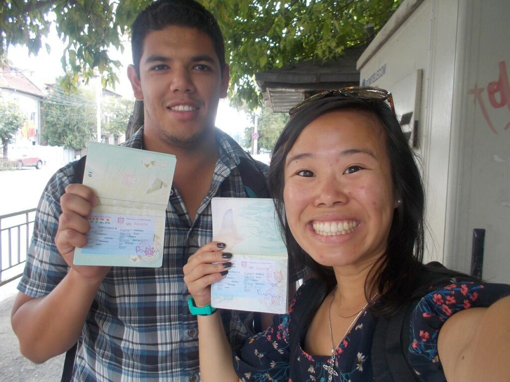 Cuando ya estábamos a una semana de partir de Rumania, Sara Chaung de Australia y yo tuvimos que hacer un viaje en tren a Bucharest para conseguir las visas de nuestro siguiente país, al principio creíamos que nuestro segundo país seria Ucrania pero para sorpresa nuestra resulto ser Moldova dada la necesidad que se tenia de misioneros, así que Sara y yo teníamos que obtener esas visas ya que nos somos ciudadanos de los Estados Unidos y nuestros países tienen diferentes relaciones con el gobierno de Moldova. Gracias a Dios el proceso fue fácil y solamente tomo dos días, Obtuvimos nuestras Visas y volvimos con nuestro equipo.