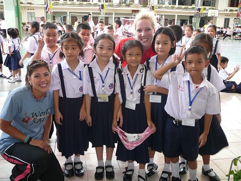As I entered the last classroom of the morning I finally felt like my heart was in the right place. We were guests in the English classes that our hosts, Bronwyn and Noi teach at the Thai high school. There are about 50 girls in each classroom and around 3,000 students in the whole school, 1st-12th grade. The high school is an all girls Catholic school. The Catholic schools in Thailand are not what you might think though. Catholicism came to Thailand over 400 years ago and to help Thai Buddhists understand Catholicism, the missionaries taught Catholic principles by using Buddhist words and names. Today, Catholicism in Thailand is really a mixture between Buddhism and Catholicism; they worship idols like Buddhist’s do, but instead of statues of Buddha, they are statues of Mary.