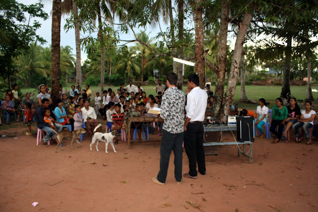 Cambodian language), but there were technical difficulties with the DVD player. Luckily, my tiny computer was able to hook up to the projector and we showed some excerpts from The Passion. After the video, Anthony had the privilage of telling everyone about Jesus. About what he did, and how much he loved them. It was really awesome to be able to provide them with Bibles. There’s no access to Bibles there, which is why we had to travel to the capitol to pick them up. I’m so glad we got to share this experience with them.