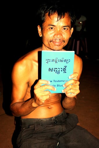We were planning on showing a video of the Gospel of John in Khmer (pronounced Ku-my- the