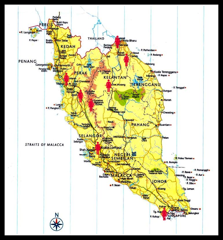And for your viewing pleasure…here’s a map of Malaysia and a little indicator of how many places we’ve been in month 4.