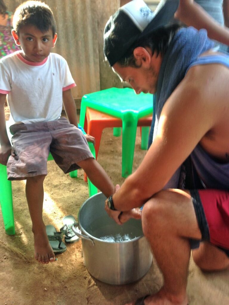 We went to backyard bible study and I was so excited to see these sweet babies. I look forward to the smiles and the laughter as these bright eyed and wired little ninos chatter nonstop about I don’t know what due to my lack of espanol. (classes can only do SO much…) Beforehand we talked about doing a skit on Jesus washing the feet of the disciples. Joe, as our designated Jesus, got the bucket and the rag and off we went. The skit went great and the babies were loving it.