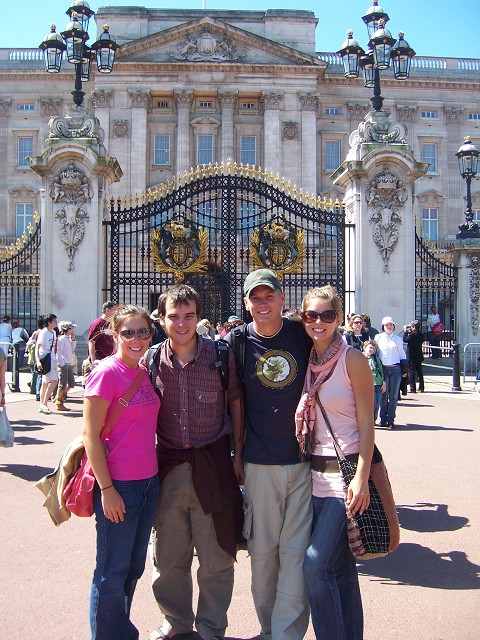London, England. EUROPE!! (yes, we squeezed in an extra continent for 12 hours). Becca, Spano, Andrew, and me in front of Buckingham Palace. My Reefs broke minutes after this photo was snapped.