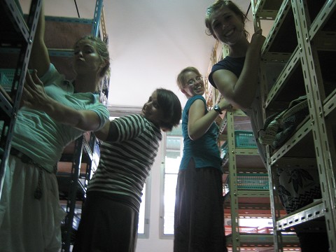 Essentially, it is a jewelry business that exists to provide alternate employment for the women who want to come out of working in the Nana bars. Currrently there are 81 employees; many but not all of the women we worked together with at Night Light now follow Christ!! Which is so encouraging to see in such a deep-rooted Buddhist culture… God has literally given them a new life. : ) Anyway, during our days, we basically helped with about everything that has to do with beads and jewelry: counting beads, taking inventory, etc.