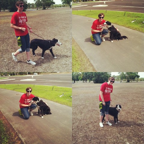 I told myself, "You're here to serve… have a good attitude and let's just get it done." As we followed her to a shed by their house to get some tools, I saw him. A beautiful border collie fenced into their yard. My eyes instantly filled with tears. In the states I worked with dogs every single day… and the weight of being away from them (and more specifically my dog, Rudy) hit me like a brick wall. I said a little prayer… "Lord, if I could get in there and just pet him… please." As we stood said to the woman, "Your dog is beautiful." She said, "Oh, do you like dogs?" I told her how much I love and miss dogs. The next words she said filled my heart with so much joy…