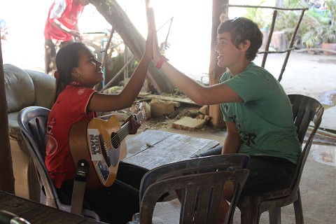 At the beginning of the week we all pick one or two of the kids to spend individual time with everyday. On that first day in between our class and one on one time, I was drawn to two girls singing “How Great is Our God.” I sat down and began singing with them. This is how I met Linda and Rotna. Both are around seventeen years old. They love to sing and I asked if they’d like to learn to play the guitar. Linda’s eyes instantly grew wide. That is when the guitar lessons began. Every day, Linda, Rotna and I play the guitar and sing together. They are both very sweet girls and I am excited to get to know them better as the month goes on.