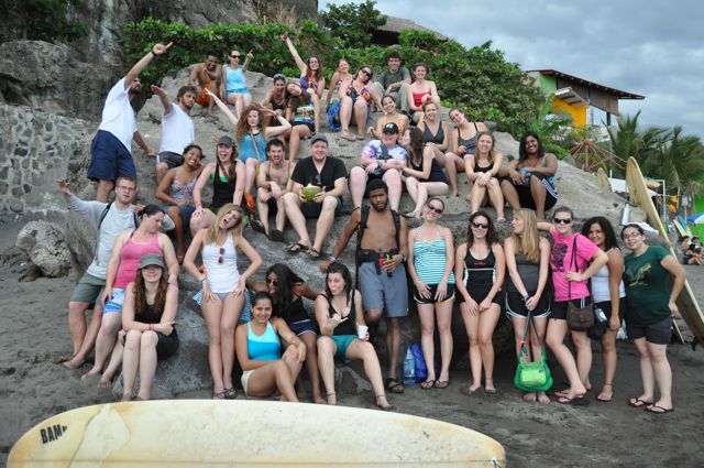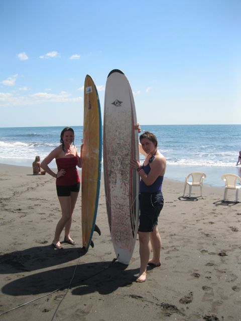 Left: Lindsay and myself with our surf boards! Learned to surf! (well kinda sorta learned, more like attempted to learn). Right: With some of the squad riding the back of a truck! Typical transport in Central America.
