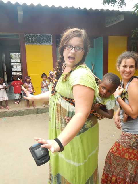 Near the end Ana helps us tie babies to our backs with Kapalanas. When it comes my turn, Ana finds a cute little girl, but before she places her on my back. She tells me to wait.