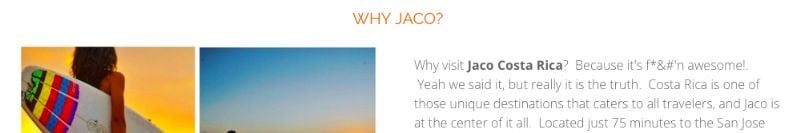 That screenshot comes from the VisitJaco website and is one of the first things curious visitors will read.