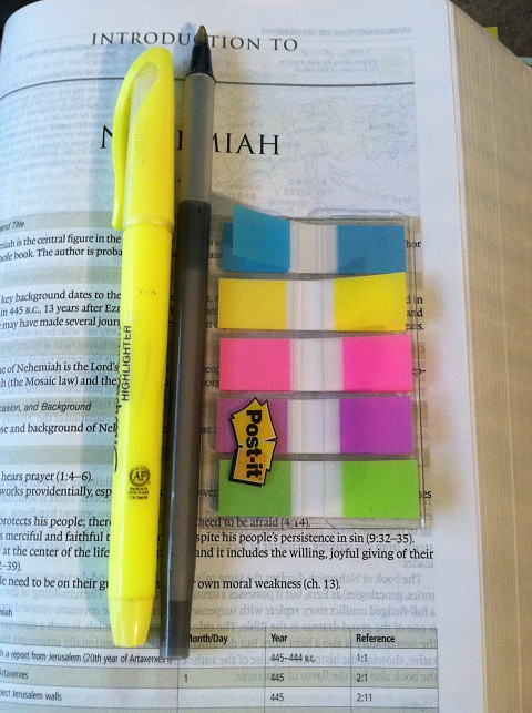 -I would suggest beginning this method as you begin a new Bible Reading Plan, as it can be overwhelming to go back through all of your highlighting during one sitting!