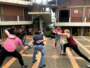 When the squad first arrived at Colombia, 11people were asked to volunteer to stay in Manantiales for a three-day teen camp. I volunteered and I am so thankful that I did. Manantiales is an area that is controlled by a gang and most of the people who live there have been run out of their original home by a gang through violence. Therefore, most of the people living in Manantiales are displaced and considered refugees in their own country. In Manantalis there are buildings on top of building and houses built side by side on this huge mountain.