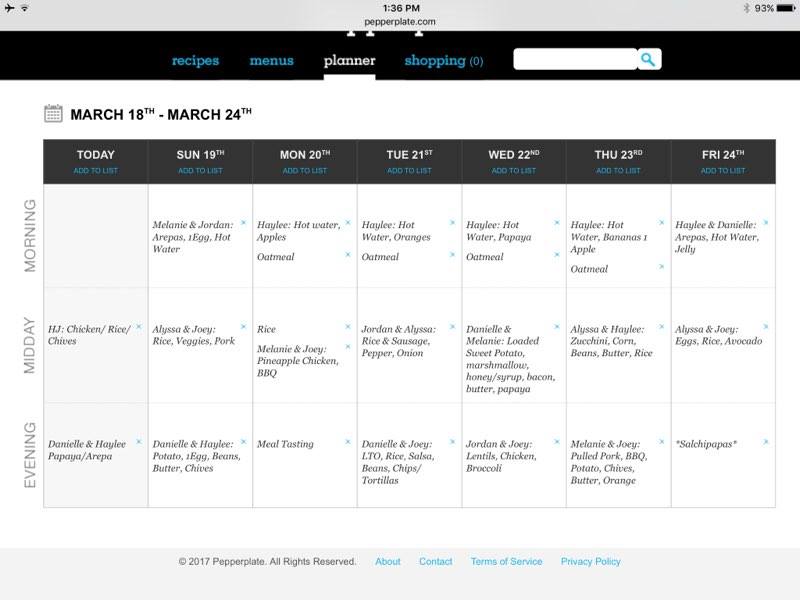 Here is our meal plan. The beautiful Danielle found an app that helped create this.