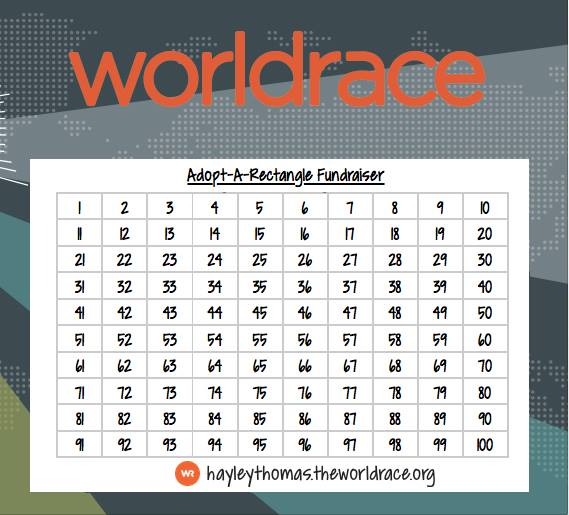 2) Go to hayleythomas.theworldrace.org and click the “Support Me!” Button at the top. Follow the instructions through the online donation section, and donate the number you have picked! For example: If you pick box #1, you donate $1. You can also adopt more than one box. It’s that simple!
