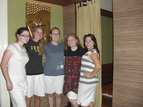Out. The 5 of us girls that stayed in