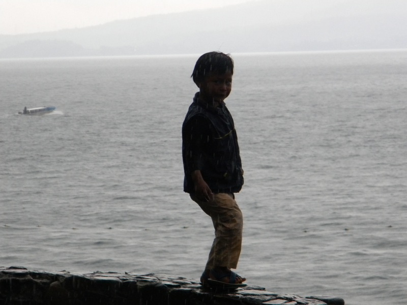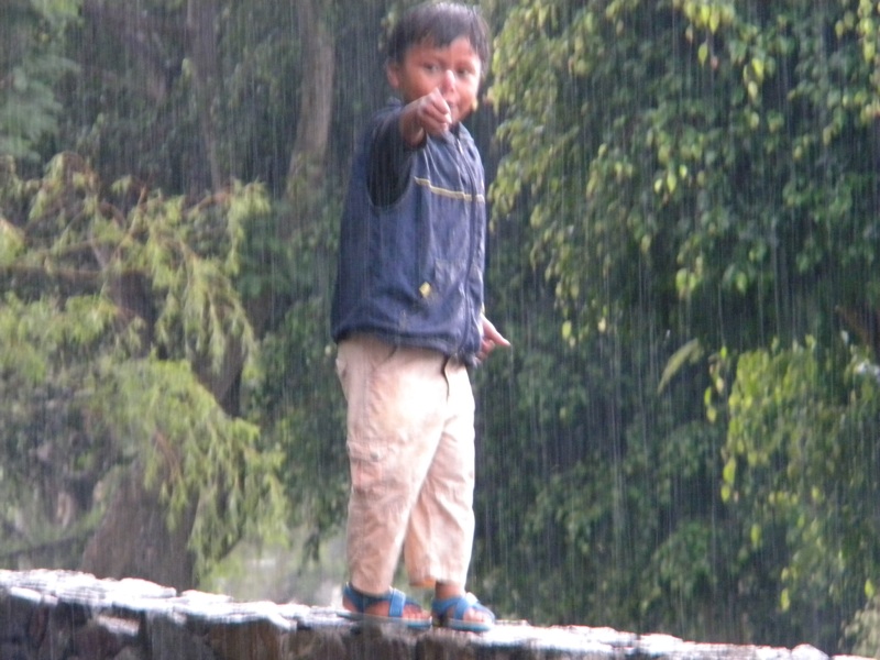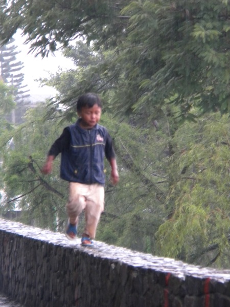 rain. He decided to climb onto the stonewall near the shelter. The wall was