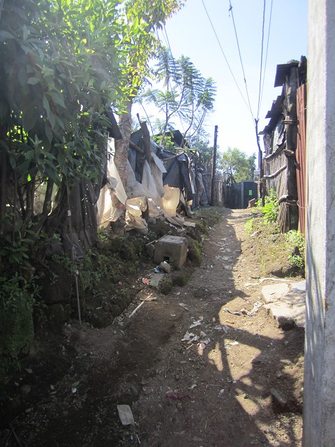 We got out of the truck and turned right, hiking up a steep hill along a narrow path between fences made of tin and barbed wire. The volcano behind us smoked steadily, and I mentally reminded myself that I needed to take more pictures. This place is too beautiful to forget, I thought, as Aura, the health promoter with gold stars on her three front teeth, knocked on a tin fence. I don’t know how she knew where to knock. I couldn’t see a door anywhere, but a little boy soon appeared and pulled the fence back.