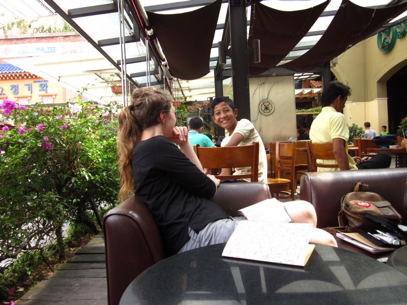 He said he often comes to the mall to find foreigners to practice speaking English with. (That’s brave!) We told him about the language center we’d been helping at, and offered him more information if he wanted it.