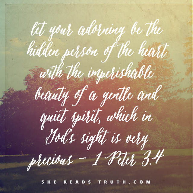 “But let your adorning be the hidden person of the heart with the imperishable beauty of a gentle and quiet spirit, which in God’s sight is very precious.” – 1 Peter 3:4