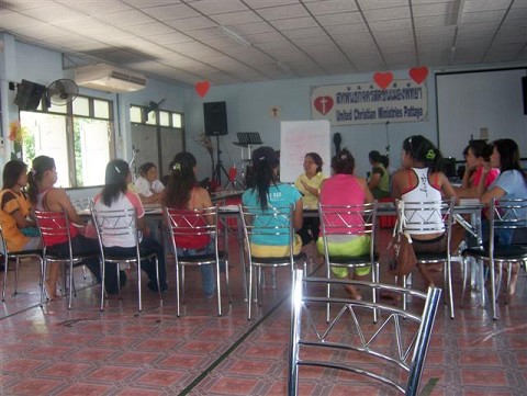 All of our ministries here in Pattaya are so good that it is impossible to distinguish any one as a favorite. This particular ministry is a lot of fun. These women are so sweet and happy. They love to laugh at us and with us. Before now I never realized the complexity of the English language. Trying to teach it to Thai women made it especially clear. The hardest part is trying to get them to say my name. The “H” sound is hard, but throw in the “th” and the “r” at the end and it is near impossible. They are good sports though. They laugh at the difference between my accent and the accent of the English lady that teaches them. They smile at me and repeat after me as we say new words over and over. They laugh sheepishly when they pronounce it wrong and give me a huge smile when I try to say the words to them in Thai.