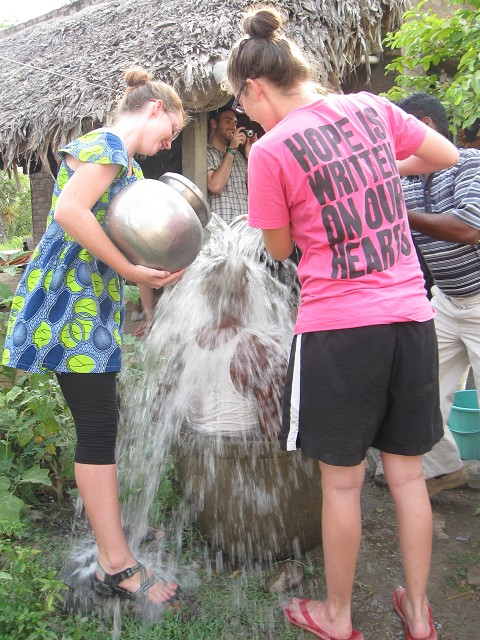 10:00am– Leave for door-to-door ministry in the village. At our first house we sit down and talk with the family, tell them about Jesus, and pray with them. They serve us drinks, we sing for them, the kids sing for us, and we invite them to watch The Jesus Film with us tonight. At our second house we meet an older man who has been coughing up blood and wants prayer. We pray for him, tell him who we are praying to and about the life of Jesus, and he tells us he wants to get baptized! There is no water, so he asks us to come back at 4:00pm when there will be water to baptize him with.