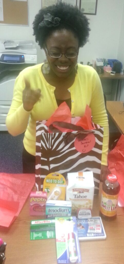 Tears! Sadness! Laughter! Peace! Love! Are words that sums up the 12th day of Helene. I cannot believe today is my last day. I was cleaning out my desk and all of a sudden WLCH walked in and my desk was filled with all types of goodies, yellow roses, balloons, a cake, Greek yogurt covered raisins, Greek yogurt covered pretzels, strawberries, grapes and trail mix. The snack was for anyone who stopped by to said goodbye. Tears just poured down my face. After a series of hugs and different staff members coming in and saying goodbye, I broke. This was just the beginning.