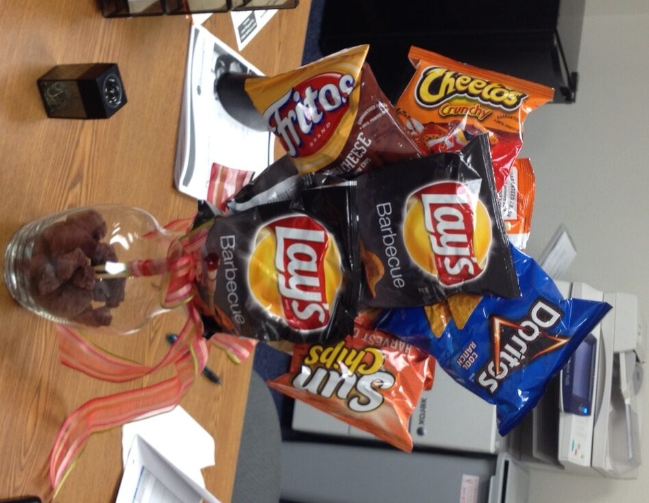 Let me tell you, those fruit and veggie bouquets have nothing on this piece of art. I know, I know eat healthy, but if you know me my snacks are white chocolate, chips, hard candy and cookies. Yep! That’s me! Presenting a wonderful creation……Chips Bouquet. If you would like to place an order please contact WLCH…..best in the business…hehehe hehehe