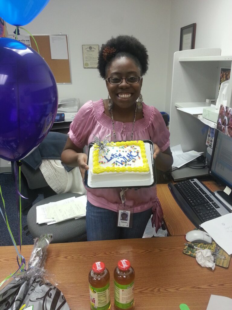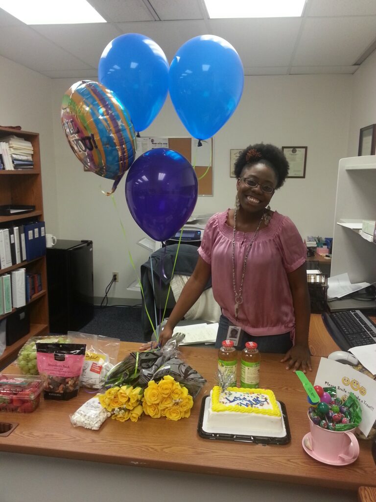 Tears! Sadness! Laughter! Peace! Love! Are words that sums up the 12th day of Helene. I cannot believe today is my last day. I was cleaning out my desk and all of a sudden WLCH walked in and my desk was filled with all types of goodies, yellow roses, balloons, a cake, Greek yogurt covered raisins, Greek yogurt covered pretzels, strawberries, grapes and trail mix. The snack was for anyone who stopped by to said goodbye. Tears just poured down my face. After a series of hugs and different staff members coming in and saying goodbye, I broke. This was just the beginning.