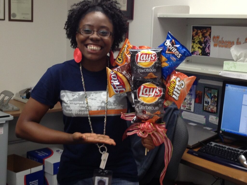 Let me tell you, those fruit and veggie bouquets have nothing on this piece of art. I know, I know eat healthy, but if you know me my snacks are white chocolate, chips, hard candy and cookies. Yep! That’s me! Presenting a wonderful creation……Chips Bouquet. If you would like to place an order please contact WLCH…..best in the business…hehehe hehehe